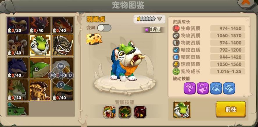 鹦鹉虎被动技能:高级感知提升、高级追击、獠牙、敏捷。
