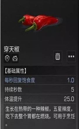 穿天椒就是辣椒了,这种穿天椒在新地图新生产的,也就是活动材料,可以用来交付交付任务,制作一些烹饪食材。