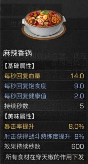 不过如果能够进入海岛地图,对于其他好品质的食材也是能够比较好获得的,而麻辣香锅这个食物所 带有的美味属性也是比较不错的。