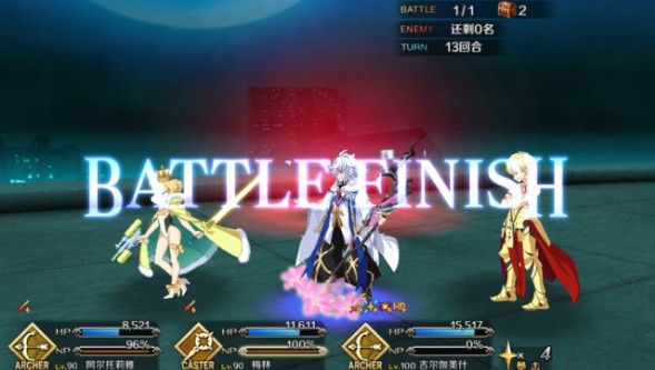 秋田君的BOX比较浅,凑不齐蓝卡队或者竞速队,使用的是弓呆、梅林和金闪闪的,一边使用闪闪来打群体伤害,在宝具开启前先用一张红卡打掉两仪式的回避即可,如果没有红卡的话,则可以用弓呆的宝具进行灭气,后面的雾绘利用宝具就能轻松解决掉了,所以个人觉得如果没有梅林孔明等拐的话,使用玛修带上几个弓阶从者也是可以的。