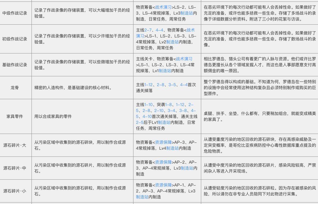 明日方舟游戏中有非常多个材料,无论是干员的升级材料,晋级材料还是合约之类的,总之非常非常多,下面小编这里就给大家汇总了全部材料的获取方法以及材料本身的来历,下面给大家简单的介绍一下。