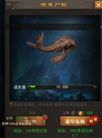 PS:悄悄滴说一句,前期养鲲经验还是非常重要的,可以提供大量的属性加成,各位大侠们千万不要错过!适当买一些鱼粮可以快速提升战力哦!