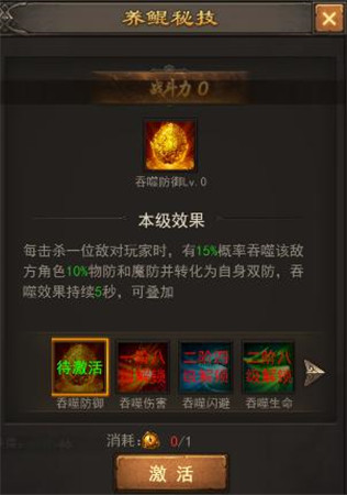 达到一定的阶数后还可以解锁秘技技能,小编这里只达到了1阶4层就可以掌握吸收防御、魔防的技能呢!PK的胜率嗖嗖上涨啊!
