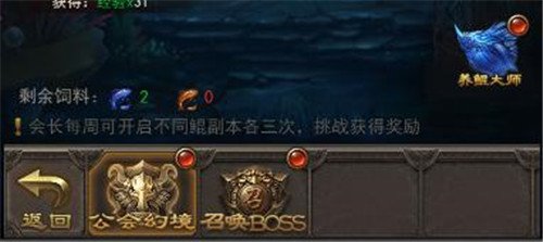 当然,除了增长属性外,会长可以开启鲲副本,妥妥的福利啊!大侠们又可以拿到不少奖励了!3只鲲每个星期可以打9次副本,一想到满满的奖励,小编的口水都忍不住了!