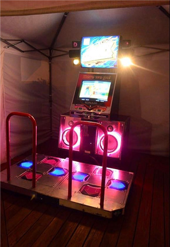 第一代跳舞机,简称DDR,1998年出品。现在在商场中的游乐场还能看到他们后续的改良版本。