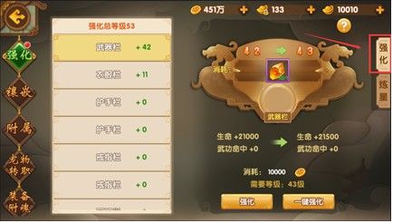 2.根据强化等级的提升,需要的强化材料和消耗会相应的增加