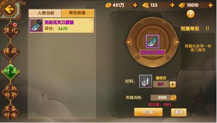 1.附属会给装备随机附属一个属性,每个属性有两个随机效果,可使用属性解除符解除属性再次附属新的属性