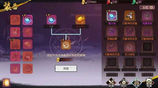 关于游戏中的装备传承系统,通过装备可以获得更高等级的橙装。不过代价较高,如果你的粉色装备是拍卖买下来的高强武器可以考虑进行传承改造。
