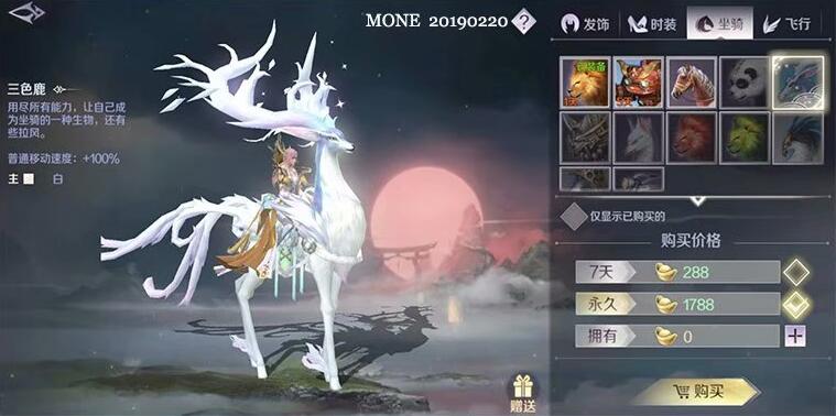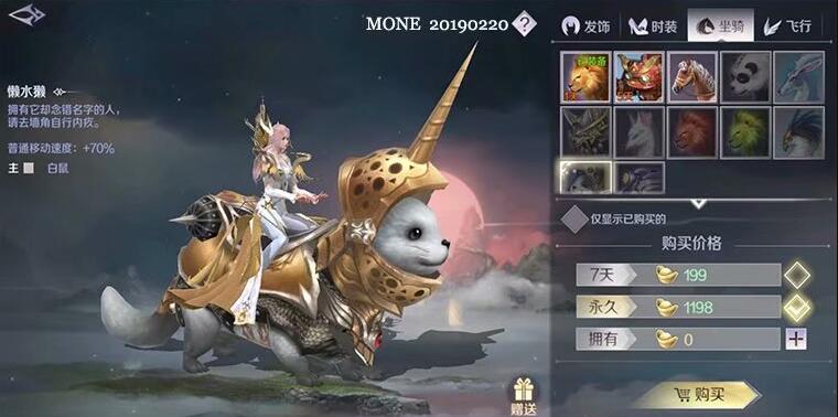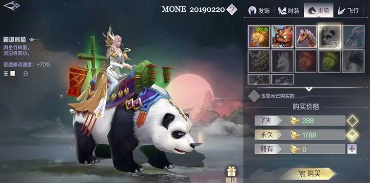 提供70%移动速度,价格为1788元宝,虽然比较贵,但是移动还比较慢,好在是很可爱的;