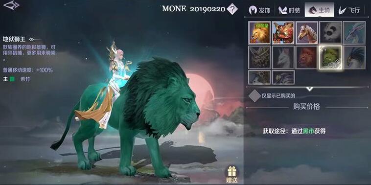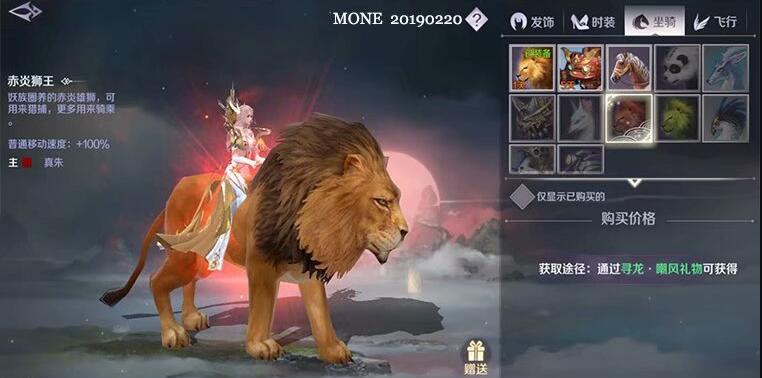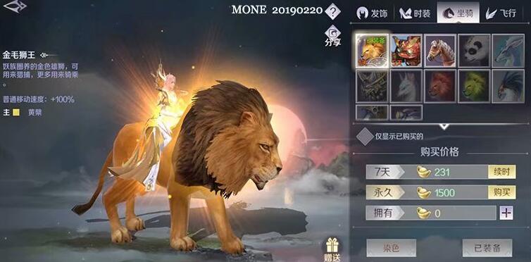 提供100%移动速度,价格1500元宝,威武霸气的狮子移动速度也不凡,王者气息;