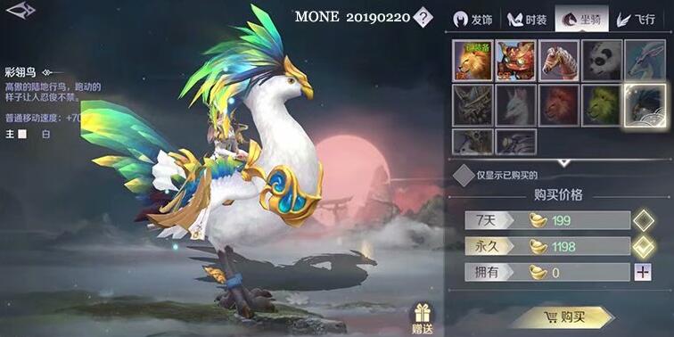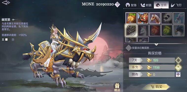 价格999元宝,可以提供70%移动速度,庞大的身躯看起来魁梧无比,特别适合娇小的女性角色;