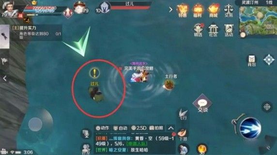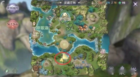 殉情侠侣在灵渡汀州的X156 Y278 Z78,这个位置就能找到任务的领取地点了,在悬崖上找到“过儿”,一个NPC,找到过儿之后要穿过他,因为过儿是站在悬崖上面的,因此要直接从过儿身边的悬崖跳下去,穿过NPC就能领到任务了。