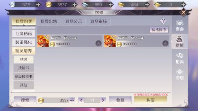 对方卖的是850万,另外还有2个人卖的是900万金币,比起A级的几万金币,高了太多了。当然,这个价格还是非常合理的,毕竟成本价在这里,比起玩家自己合成S级精灵便宜一些了。