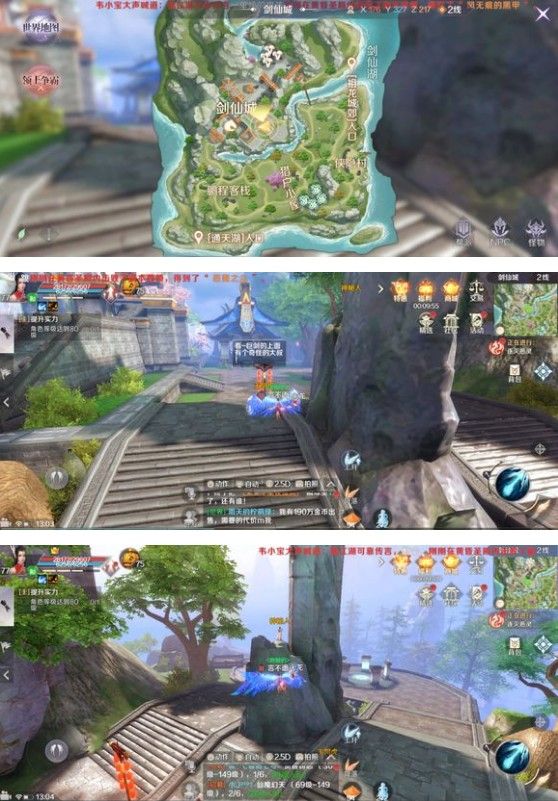 第三个动作是“集合”,关键在于神秘人的位置,这个神秘人非常难找,在剑仙城的一个巨剑上,具体的位置分享在下面图片中了,可自行查看。