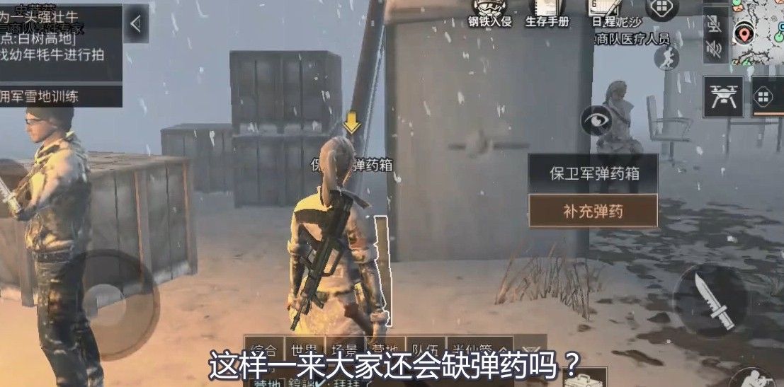 来到保卫军这里,大家便可以看见,这里竟然有一个弹药箱,这难道说是给我们用的?没错,这就是保卫军提供给我们的,这样一来大家还会缺弹药吗?完全不会啊,但大家要注意的是,这个弹药箱每天只能补充,次,但不管怎么说都足够了啊,武器一大堆的小伙伴,都可以拿来补充。