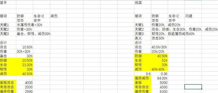 大家说伤害面板可能不高防御倒是有的,这里我们还可以来对照一下甚平,甚平攻击面板也很低啊4000左右带属性伤,战国攻击面板最少4500以上这个我可以保证4颗7级攻击,属性伤害技能百分比你们也看到了,高甚平几个头,甚平能打的伤害他能打,甚至伤害要高出不少,现在甚平天梯毕竟极端的打法4颗速度宝石尽量先出手,4颗暴击宝石黄金套技能带2环水5群伤7终结,如果起手7魂就257,配合鹰眼无和辅助青雉伤害非常可观AOE爆炸清场流,伤害方面属性伤保底所以大家根本不用担心,而且战国强是强在全方面做的比较好,他每回合自保不说还能给一位残血队友自动生命续航,如果他和卡普联手夹在他们中间的输出估计可以站到最后,这也是不错的