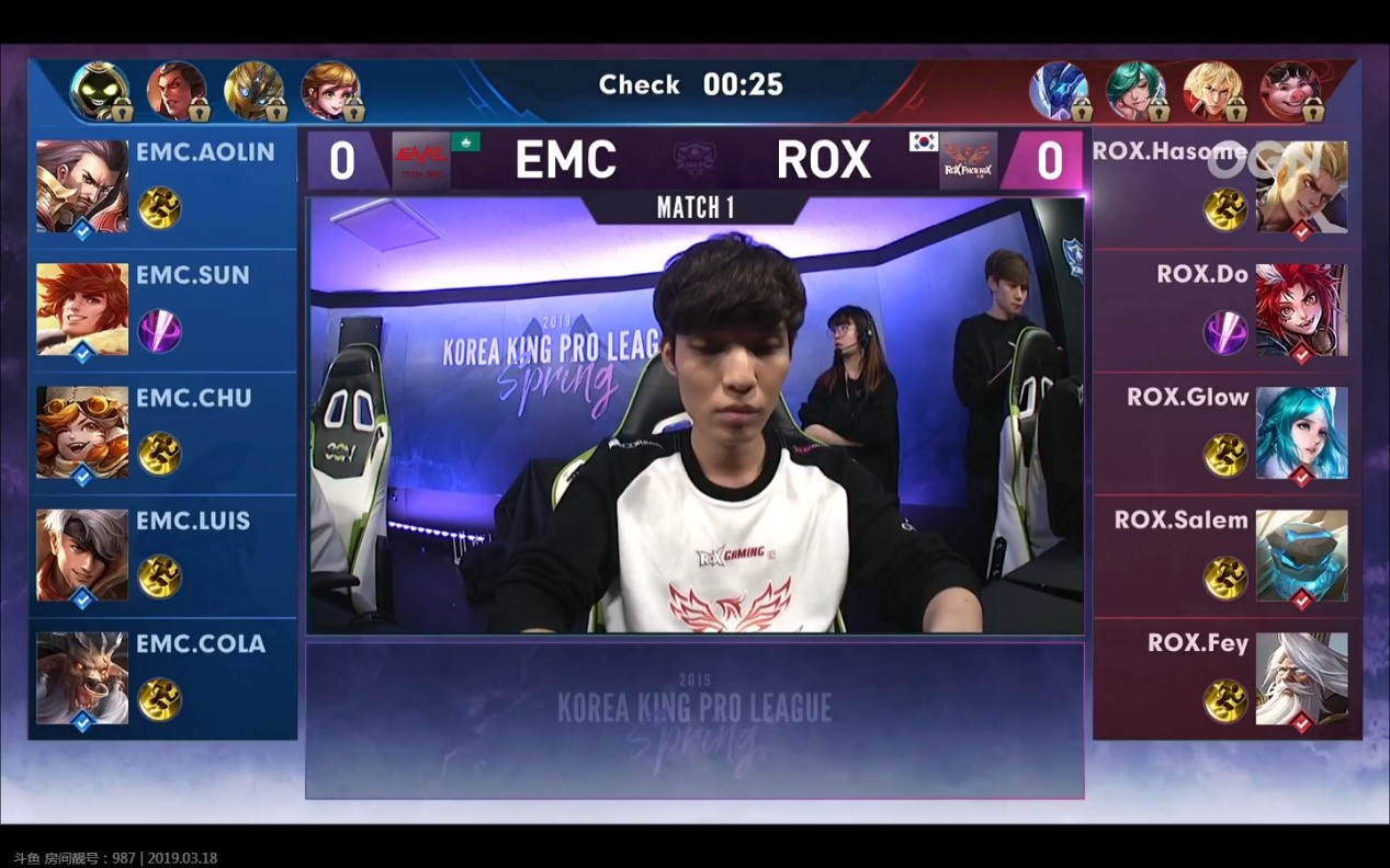 2019年KRKPL春季赛进一步接轨KPL,同样采用BO5、双循环的赛制进行。首日对决,第一场由来自中国澳门的EMC战队对战韩国战队ROX;此后的第二场是由创造“60分钟名刀水晶”最长鏖战历史的两支战队奉上,双方正是来自中国香港的CW战队以及来自韩国的KZ战队。