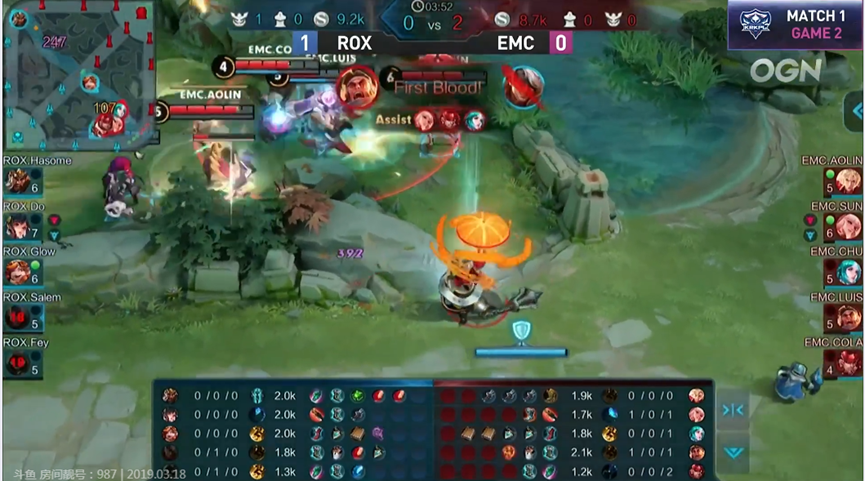 战术调整后,EMC祭出东皇太一以及娜可露露意图提速,双方在五分钟前便爆发激烈冲突,ROX也依靠橘右京和兰陵王还以颜色,你来我往的战斗一直持续到9分钟,ROX强行击杀主宰,掌握推塔节奏,最终3:0击败中国澳门EMC战队,取得揭幕战胜利。