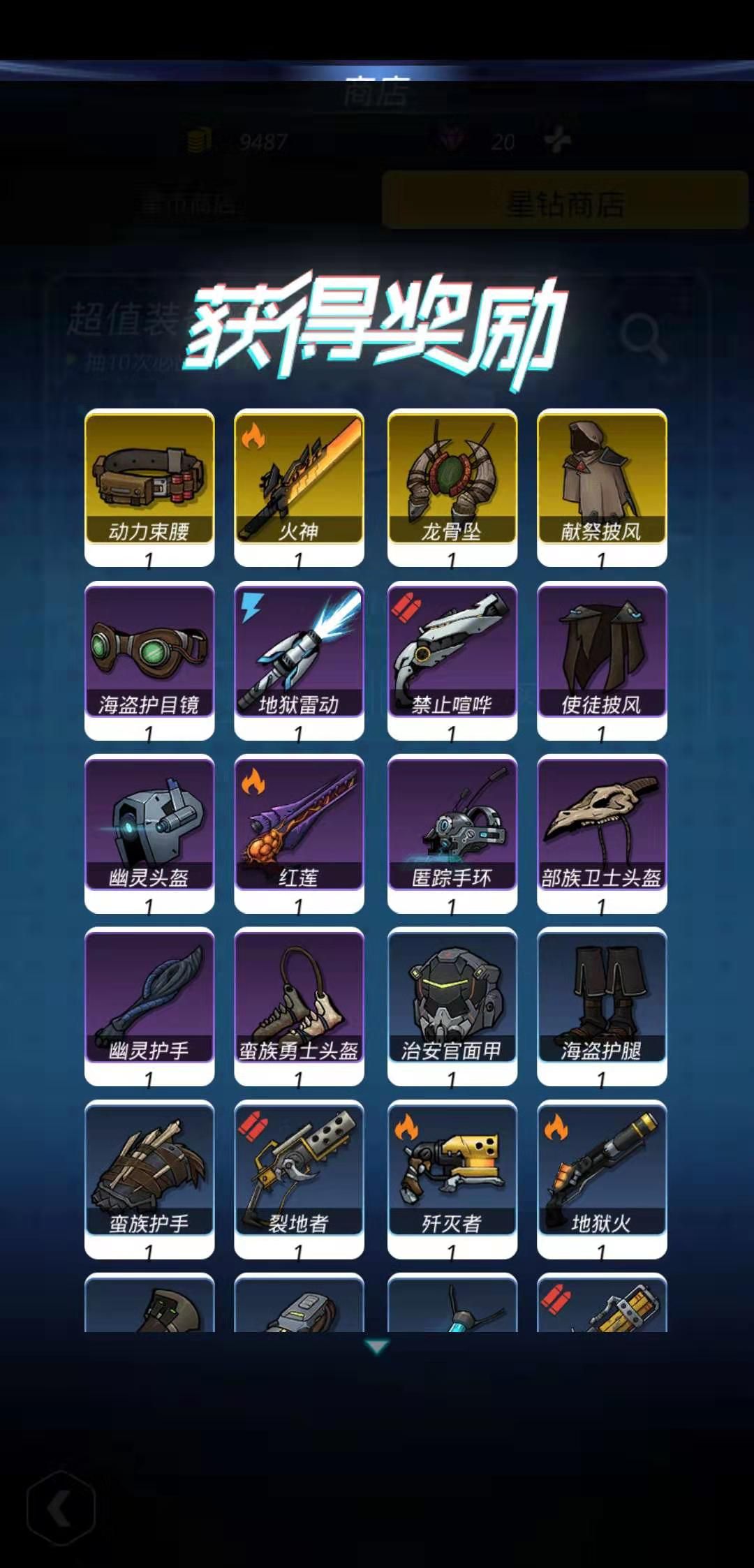 接下来就可以进游戏过剧情,然后配合密令8个和邮件的4个抽奖票,商店刷初始了,总共12次机会,一般来说都是4-5橙,如果出了散弹枪啊、刀的话就留着吧,完美开局!