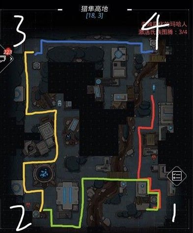 为了避免消耗行动力,打到四个玛哈石够用就可以了,其他的随机事件尽量躲避,然后按照我给出路线(见下图)依次激活图腾。