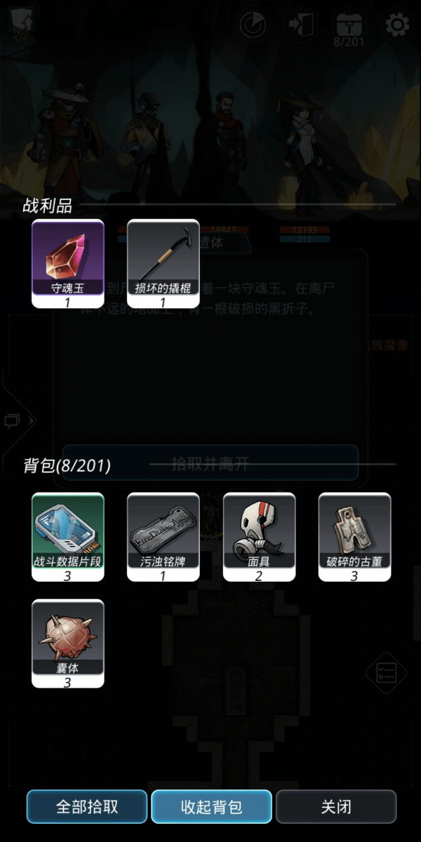 地图右下角的尸体(站在头部)可以翻找到一把铲子(破碎部分松动的墙壁,结实的墙壁需要撬棍),向右下移动,敲破墙壁有个宝箱,获得第一块守魂玉。