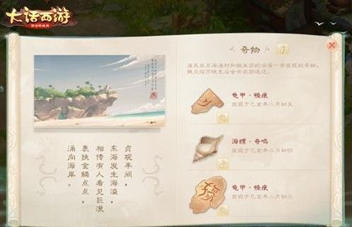 玩家提交海产给万晓生时有机会触发发现奇物,全服一共就13个奇物,每一种在全服有且仅有一个,发现奇物的玩家可以获得特殊奖励,碧海潮生界面会记录该玩家的服务器、昵称和发现时间,全服玩家都能在碧海潮生界面领取奖励,同时点击奇物互动。