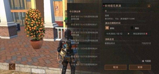 玩家可以考虑播放烟花和设置不同的烟花,这里设置是需要技巧的,不会的就燃放初始的烟花即可。玩家可以在这里设置不同的表演,也可以选择不同的时间燃放,如果是有活动,这个时候燃放是更好的,可以和营地的玩家一起看。
