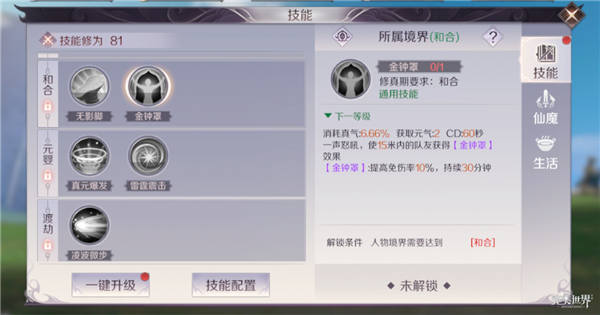 武侠突破和合境界之后,在副本中的作用就进一步加强了,此时我们学会了用于打断boss招数的技能—无影脚。但这个技能释放的成功与否,是建立在我们对boss技能是否熟悉的基础上。另外,我们还学会了金钟罩技能,能够让自己和15米范围内的队友在30分钟提高10%的免伤率,能够在一定程度上提高武侠近距离作战的容错率。