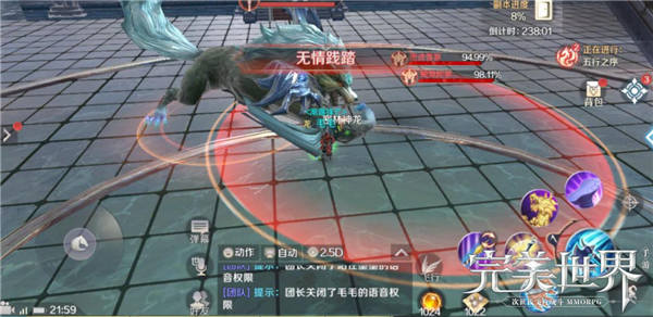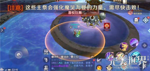 魔哭九婴对四周释放技能,被技能波及到会获得恐惧状态,一段时间内定身!特别是近距离战斗人员,要注意向后躲避!如果躲不掉,辅助要及时补充近距离战斗人员的血量!