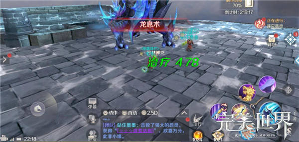 玄霜巨龙会呈扇形从左至右进行龙息,被龙息攻击到的队友在受到伤害的同时,还会被龙息击退!在玄霜巨龙释放龙息的时候记住走位!