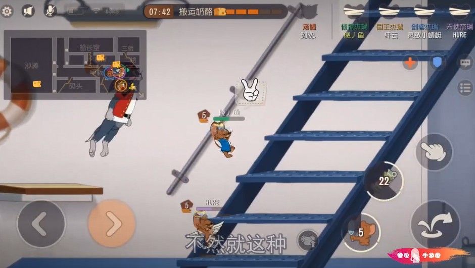 第一个奶酪推船长室,安全许多,奶酪进洞,看来“美食家”知识卡真不能带,换了一套知识卡,发现出奶酪几率还不低,我们第一个奶酪都推进去,天使才拿到奶酪,也是难为他了。准备隐身搬运第二块,汤姆直接拿着道具来了,还好是“护佑”不然又得第一个GG,国王意识也可以,看到被打趴直接先放无敌,感觉这猫爪也太假了,在楼梯上面都还能抓到下面的人,强制被遛猫,迷得法子,加上老鼠夹和碎片还有这猫爪可以肯定,一定是3级长爪,不然距离没这么远的,国王也是厉害了,先是挨猫爪再挨平底锅,还是硬救,也是没谁了,说的中国好队友应该就是这种吧!
