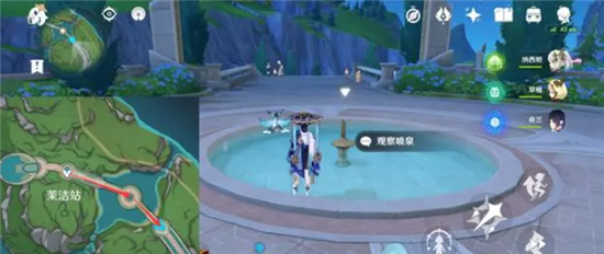 传送到茉洁站,沿着路往前走,见到喷泉处有光锥,交互进行观察,获取隐藏任务——泉有重喷日