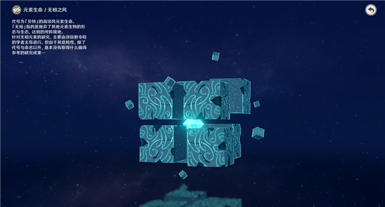 代号为「贝特」的高级风元素生命。「无相」指的是抛弃了其他元素生物的形态与生态,达到的纯粹境地。针对无相元素的研究,主要由须弥教令院的学者主导进行。但由于其危险性,除了代号和命名以外,基本没有取得什么值得参考的研究成果···