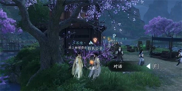 2、在对话过程中得知白衣公子想要看桃花,这时玩家需要带着他去观赏桃花。