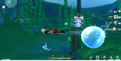 2、技能一:当玩家的前方出现多个水球,则可以扔出水母进行引爆。