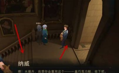 打开哈利波特魔法觉醒手游,今天的巧克力蛙npc在城堡主楼里面。