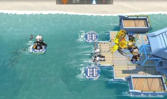 安稳度过前期,让棘刺的暖机完毕,然后在第3波的时候在中间偏向于上方的地方布置水面平台,放下银老板。
