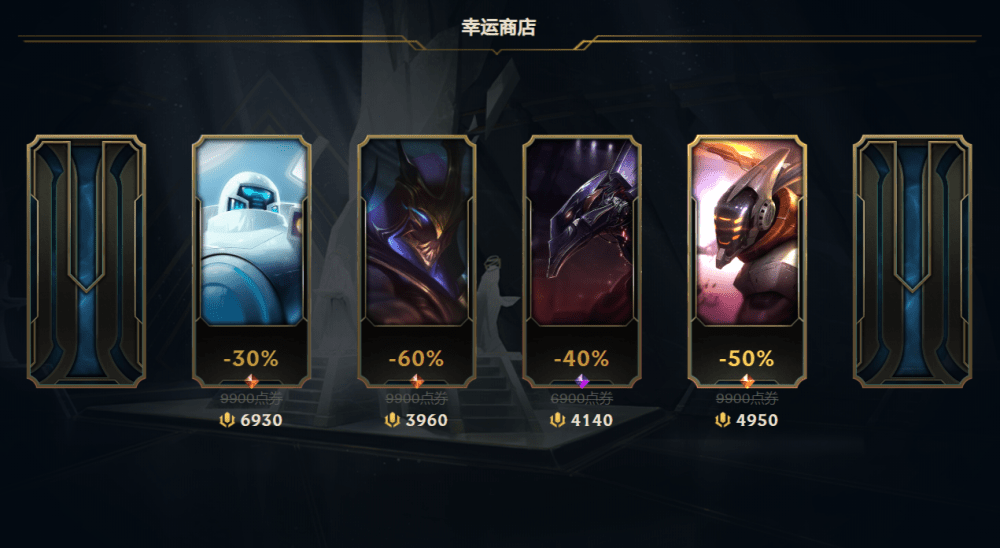1、每位召唤师可以获得0~6个不等的皮肤推荐,每个皮肤均有一定的折扣