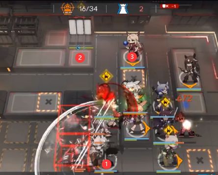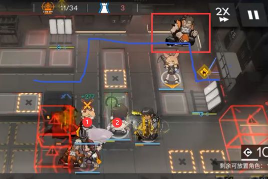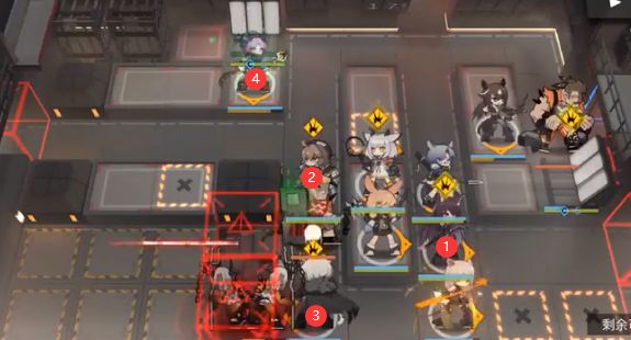 2.接着下近卫 → 群奶。上路会有一个重型罪犯按照蓝色路线移动,直接放给博士吃了就好。