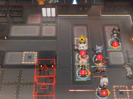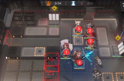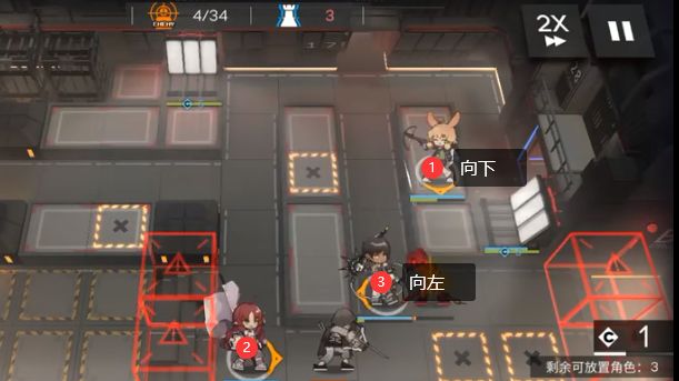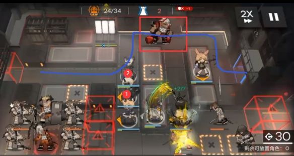 1.如下图所示,开局先锋(堵路+回费)→ 单狙(清怪)→ 群奶(回血),然后再补先锋(堵路+回费)→ 单狙(清怪)。