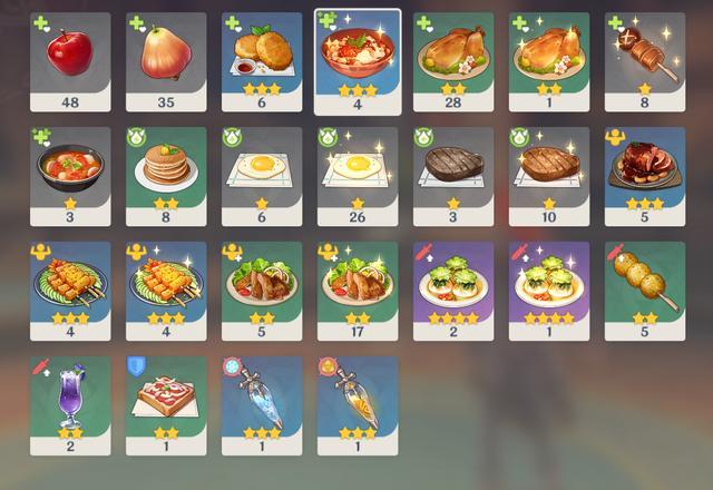 不过从食物上的这些小细节上来看,官方还真是下了一番功夫,不过玩家在平时制作食物的时候要选择一些实用的食物,特别是加攻击和暴击的可以多做一点,恢复类的最好别做,因为在做任务的时候就能获得很多,而且游戏当中是有奶妈存在的,所以基本上不打boos的话用不上食物恢复,然后玩家们有香菱的话,可以用她来首选制作,因为香菱的天赋是在做食物的时候能有一些几率获得双倍的产出,运气好的话食物基本上是吃不完的。