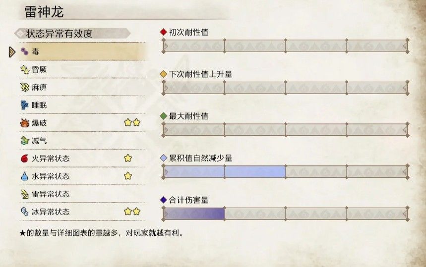 肉质属性如下图(数字越大说明对此部位伤害越高):